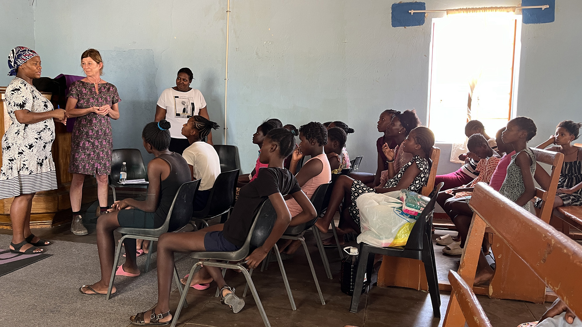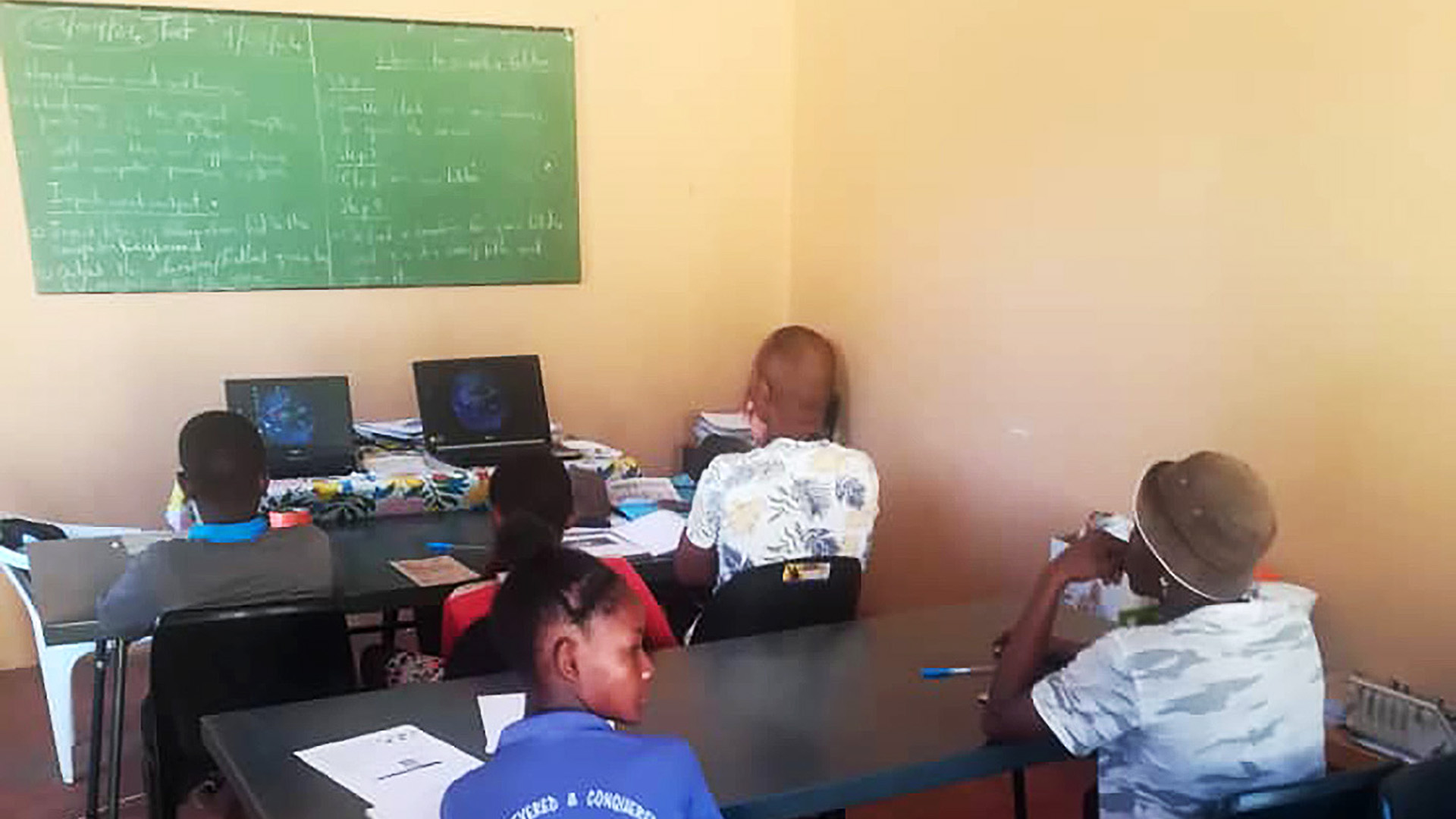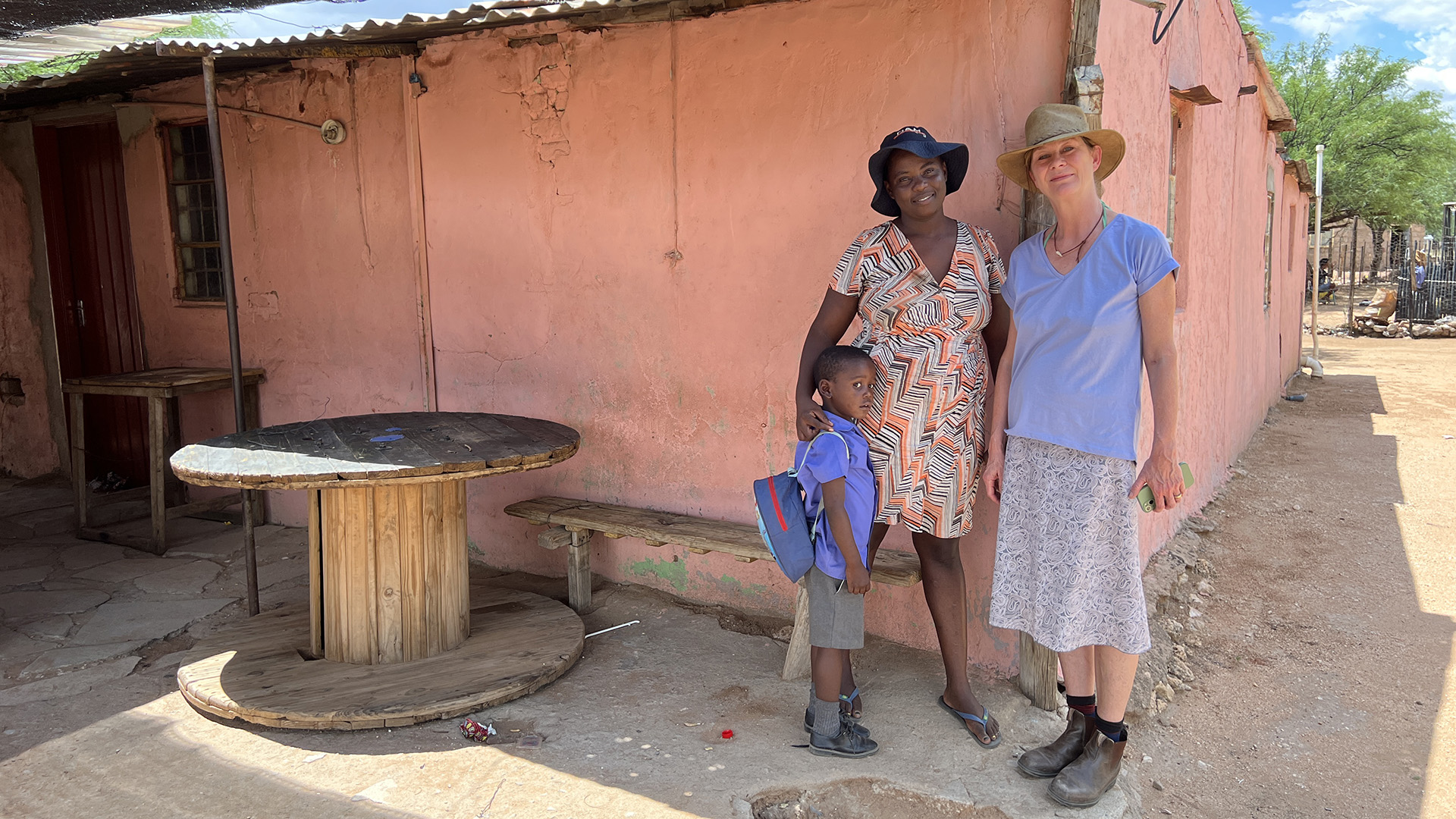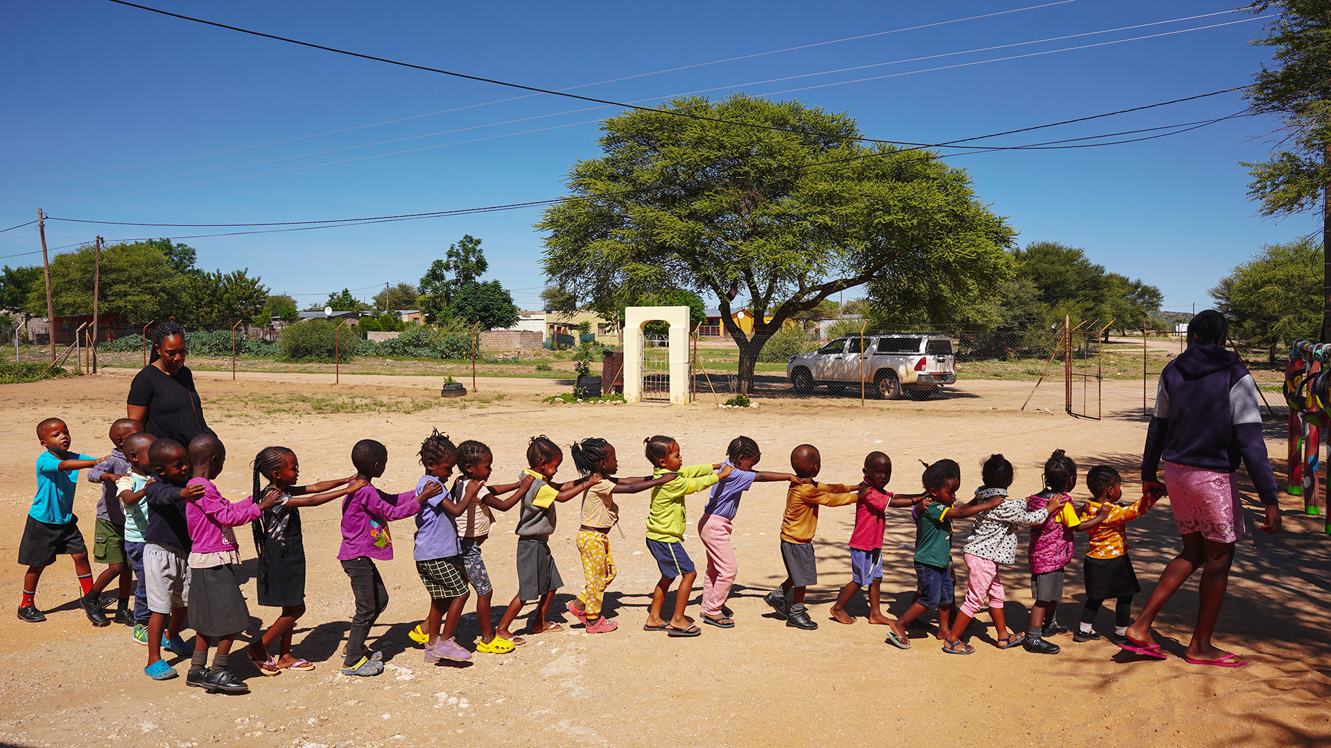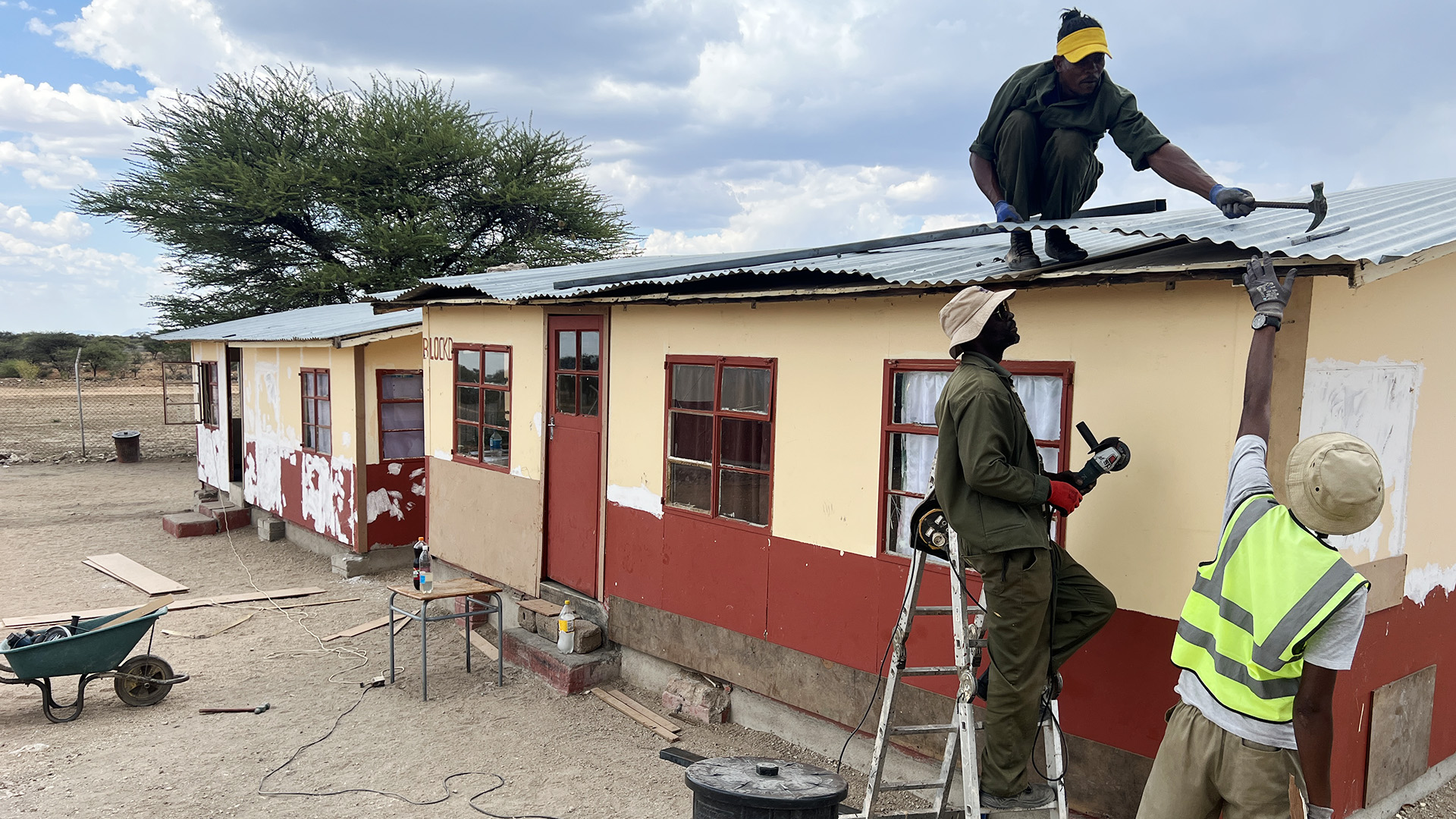 In January 2022, on the way to Kalkfeld, to start the construction of three new classrooms / Entrance to the Primary School in Kalkfeld / First meeting with Ms Matilda !Kharuchas the Principal of the school / In the garden it grows and thrives, the garden assistance bears fruit / Schoolchildren weed in agriculture lessons / Ms Pena, the head of the ABC kindergarden, greets us warmly / We support the ABC kindergarten with food and medicine, among other things / The wonderful primary school teachers / Ms Petra gives new medicines to healing ladies Ms Namases and Ms Isete / Rainy season in the savannah of southern Africa / The first visit from Mr Rüdiger the contractor who will build the 3 new classrooms at the school / The two dilapidated old classrooms have to be moved / Mr Cloethe and his team are doing a great job / As reserves and closure of the schoolyard / „Ground breaking“ for the construction of 3 new classrooms with all those involved from the school, the community and the school ministry / The garden assistants work in the new “Nursery” / Villagers in need of particular help are waiting for food in the soup kitchen, which is run by dedicated women / Mahangu workshop in the orchard / Also this time we support the school feeding program / The storeroom is well stocked again, the ministry is supposed to deliver in April… / Rich cabbage harvest as an extra for school feeding / Volunteer cook in the fire wood kitchen / The popular “Girlstalk” with Ms Petra and Ms Djambule / Creative postcard workshop / Tree planting workshop / Attentive schoolboy with moringa seedling / Kickstart support for the “Go Beam” kindergarden next to the school / We hire a local carpenter for the chairs and tables / The first days of kindergarten / Farewell pictures… / Contract signing for the construction of 3 new classrooms with storeroom, 4 hours before departure! / sunset – we will come back, to build with, in July 2022