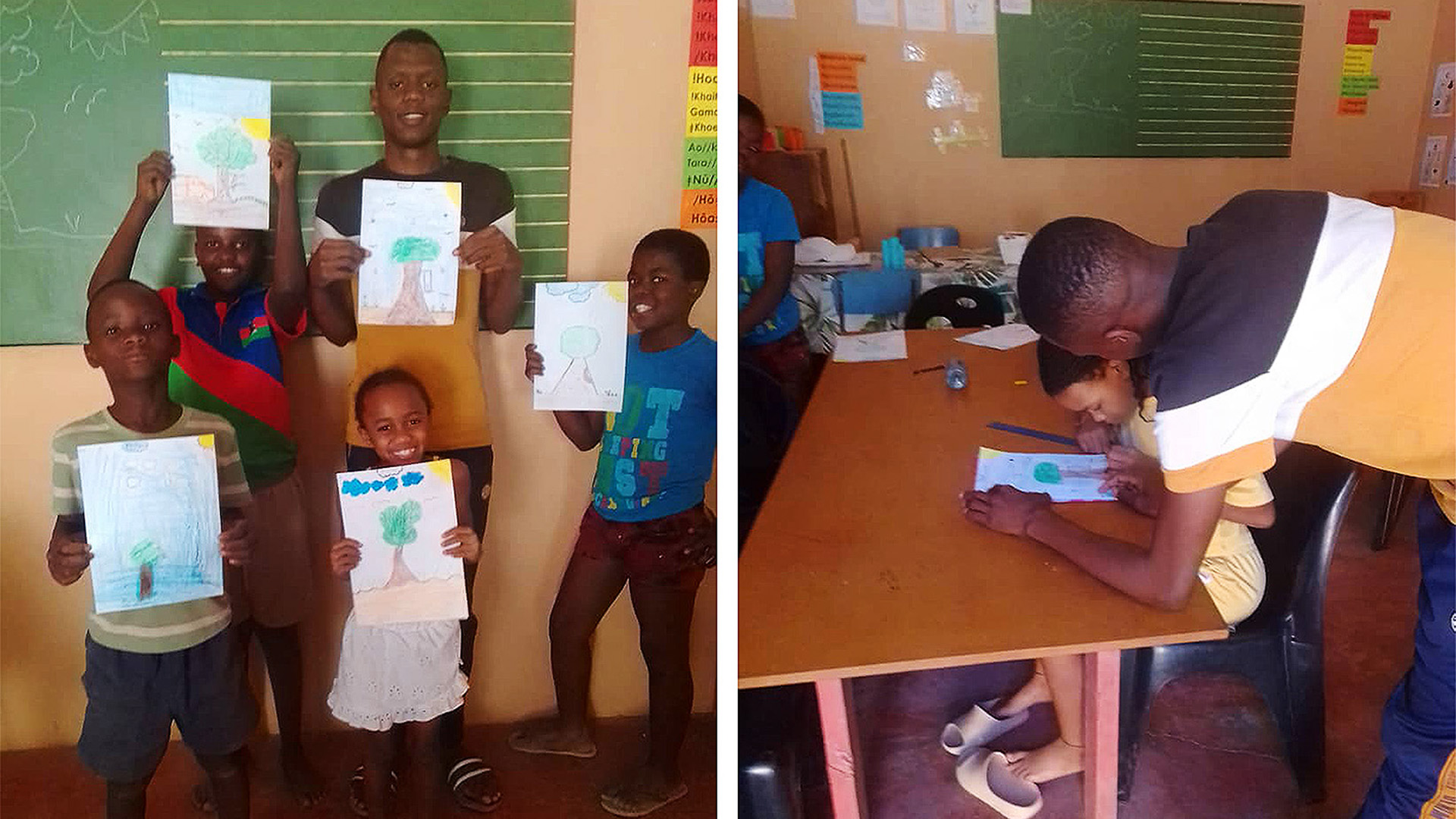 Construction garden shed and tool shed / construction cleaning station: 3 sinks, 3 taps, drain / installation rainwater tank 5000 liters for roof water use in the school garden / organization and purchase material agricultural instruction: garden / construction tools, saws, hammers, chisels, drills, bits, rivet tongs, brushes, paints, screws, nails, lancet, watering cans, and a lot of seeds / 7 planting / substitute planting with sticks: 3 passion fruits, 3 lemon trees, 1 guava / building of 16 concrete stone circles around the shade trees / organization and purchase of 500 kg maize flour for the school-feeding / hygiene workshops / aloe vera and tomato workshop / tree and parasitic workshop / pictogram and sewing workshop / donation 500 spoons / numerous endless tinker workshops / commissioning and payment garden assistant (Mr.! Kharuchab ) for 6 months / research new building classrooms and children’s home